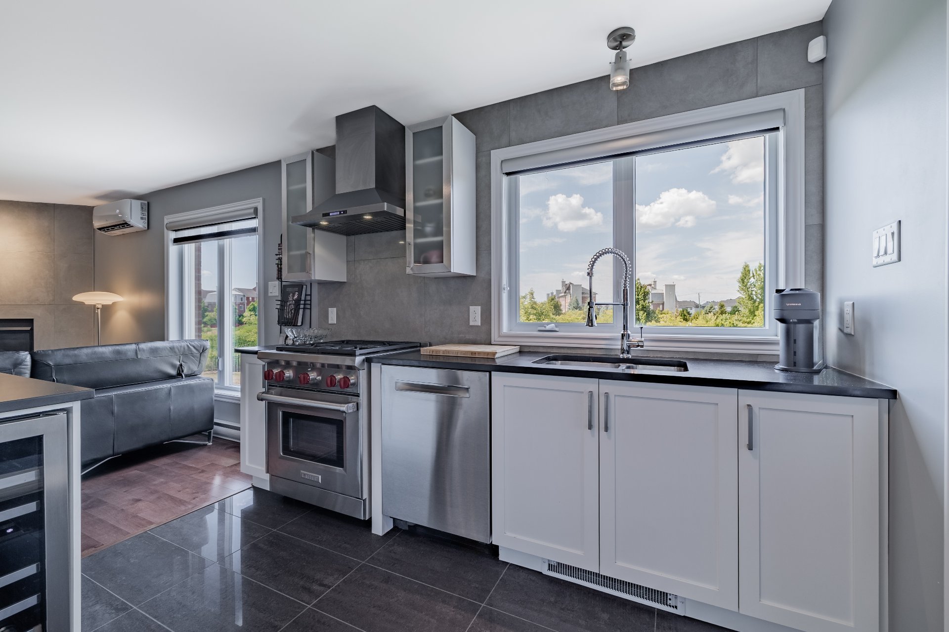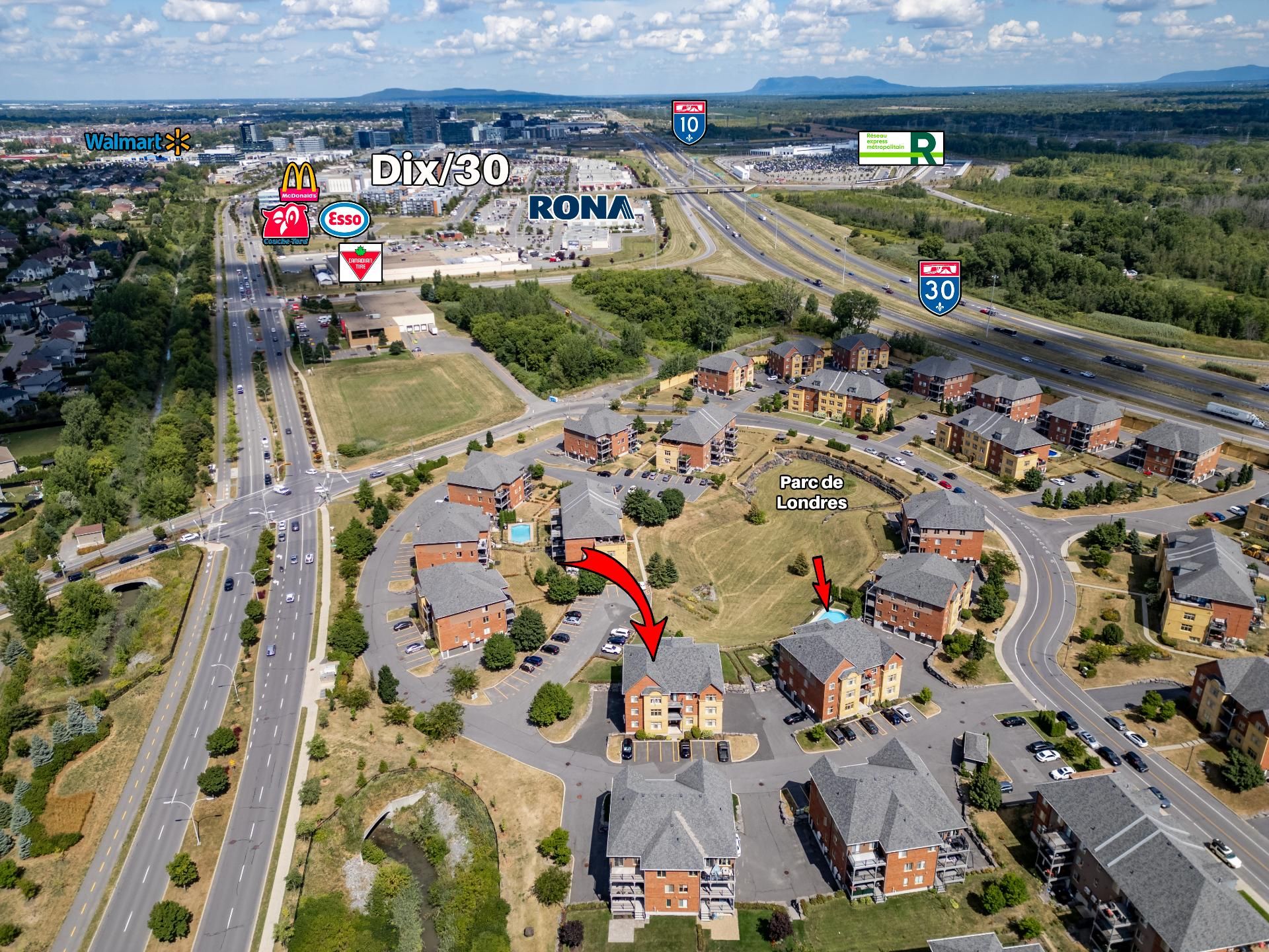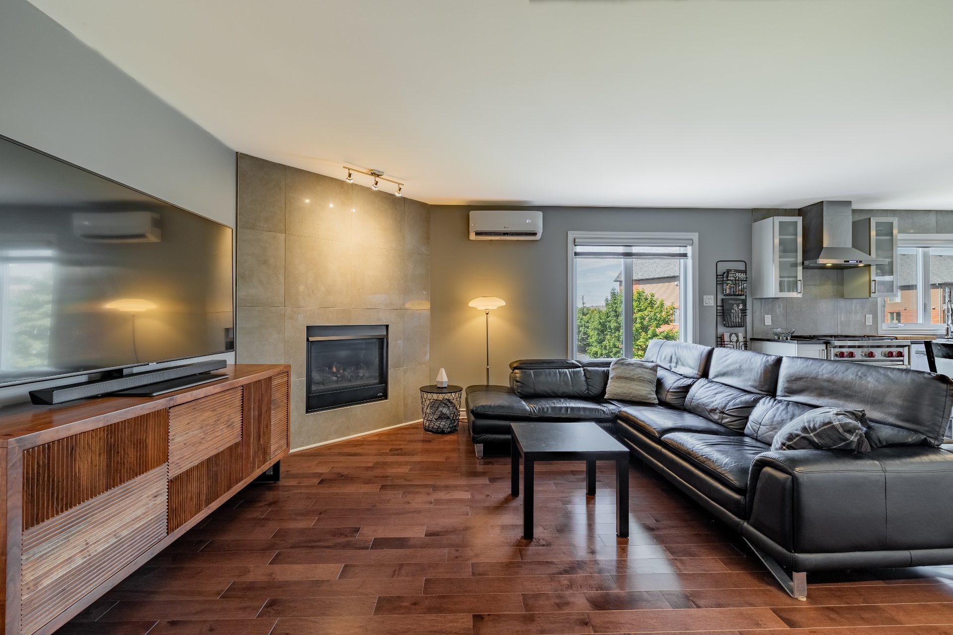 EXCEPTIONAL ADDRESS! Ideally located in a sought-after area of Brossard, this spacious condo with contemporary design will charm you with its open layout and abundant natural light. The high-end kitchen opens onto a welcoming living room with a gas fireplace, perfect for entertaining. Three generously sized bedrooms, an ensuite bathroom, a private balcony, and a heated garage complete the space, offering remarkable everyday comfort. With a prime location near Quartier DIX30, the REM, shops, schools, parks, and public transit, this condo stands out for its refinement, comfort, and exceptional accessibility.